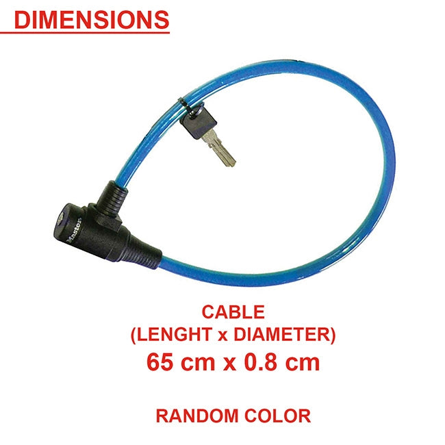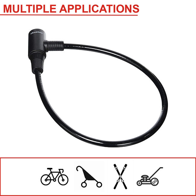 Το λουκέτο ποδηλάτου με συρματόσχοινο της Masterlock έχει μήκος 65 cm και διαθέτει στριφτό χάλυβα διαμέτρου 8 mm για αντοχή και ευελιξία.