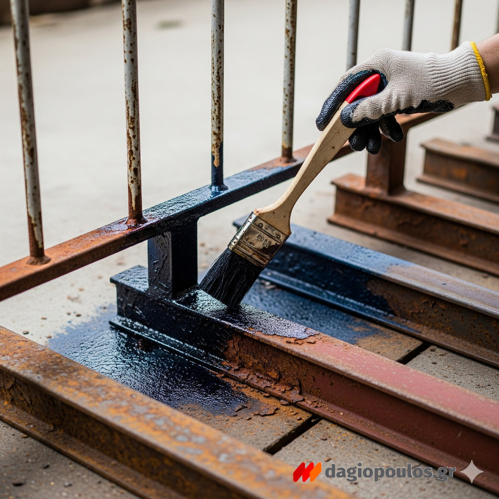 - Πριν από την εφαρμογή αντισκωριακών ασταριών και τελικών βαφών