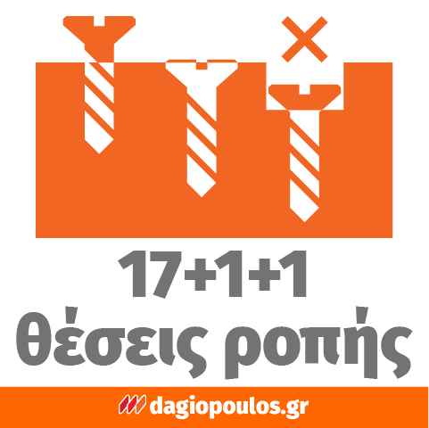 - • 17+1+1 Ρυθμίσεις συμπλέκτη για ακρίβεια στο βίδωμα & διάτρηση