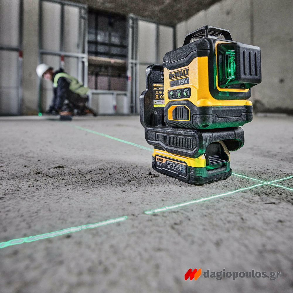 Αυτό το πράσινο λέιζερ DCLE34031N-XJ από την DeWalt είναι ένα νέο συμπαγές λέιζερ τριπλής γραμμής 360° μοιρών με μπαταρία που βρίσκεται στη βάση.