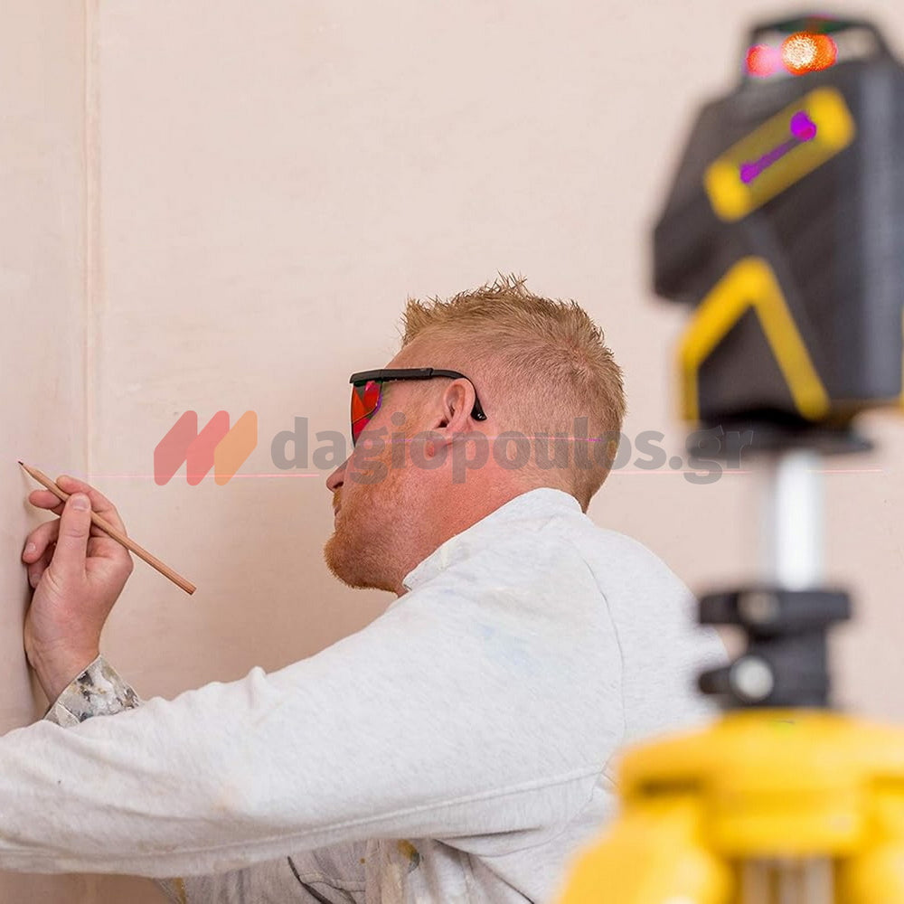 Πολυγραμμικό laser 360° κόκκινης δέσμης για ακριβή χάραξη και ευθυγράμμιση σε εργοτάξια και ανακαινίσεις.