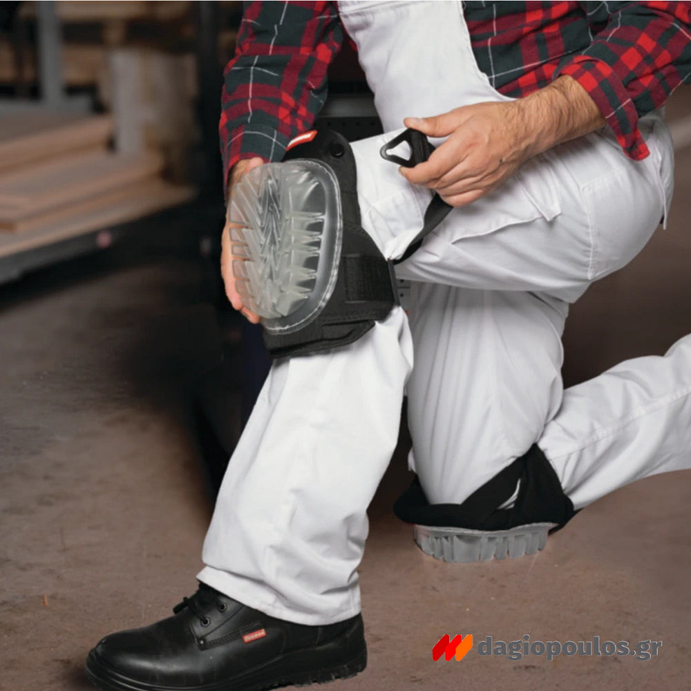 Επαγγελματικές επιγονατίδες εργασίας με ύφασμα και βαλλιστικό Nylon 600 Denier από αδιάβροχο υλικό με προστατευτικό κάλυμμα σιλικόνης.