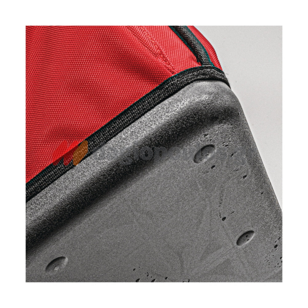 Η σκληρή βάση προστατεύει από υγρασία και φθορά, ενώ ο ρυθμιζόμενος ιμάντας ώμου διευκολύνει την εργονομική χρήση σε εργοτάξια και συνεργεία.