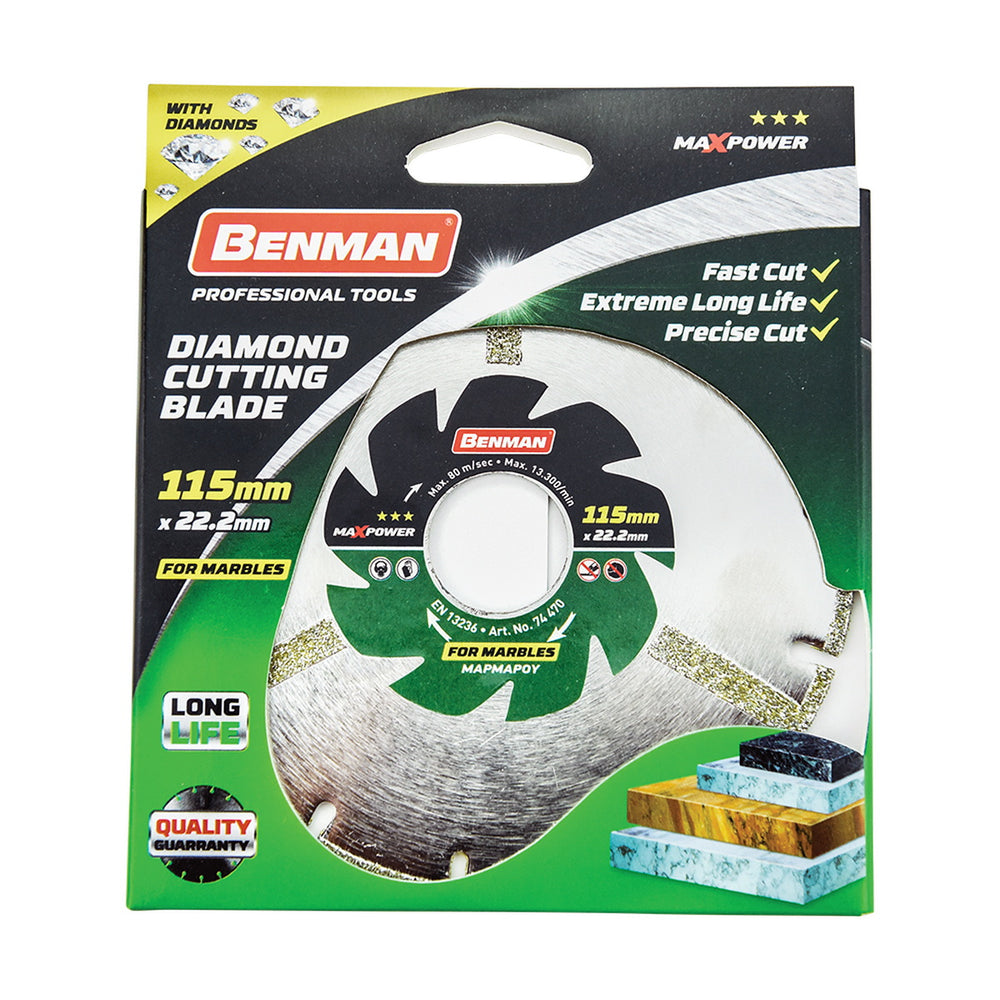 Benman 74470 Maxpower Δίσκος Διαμαντέ (Διαμαντόδισκος) Κοπής Μαρμάρου 115mm