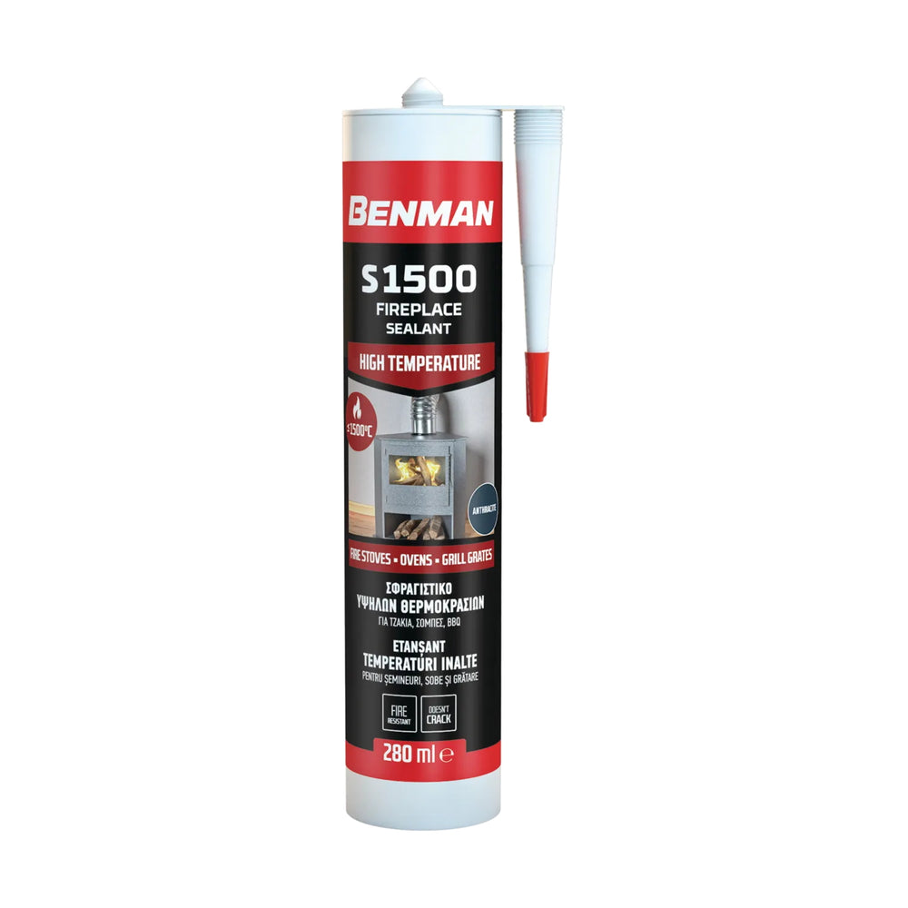 Benman S1500 Fireplace Sealant Σφραγιστικό Υψηλών Θερμοκρασιών Για BBQ Τζάκια Σόμπες Ανθρακί 280ml
