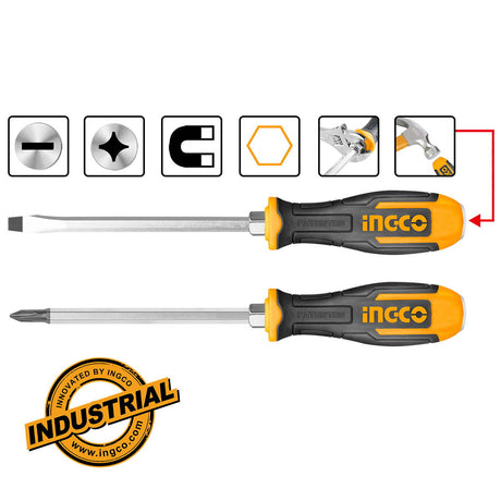 INGCO HSGT680208 Κατσαβίδι Περαστό (Χτυπητό) Σετ 2 τεμ.