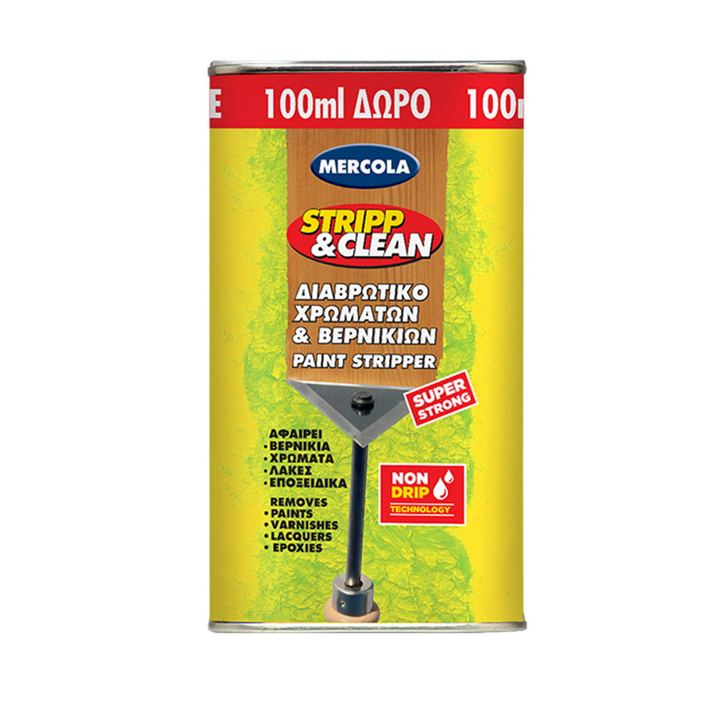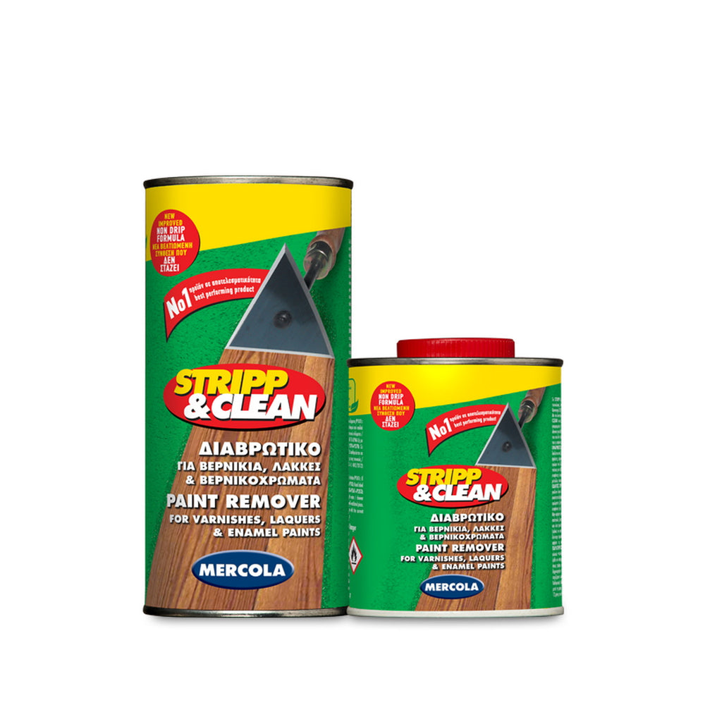 - Με νέα δυνατή χημική σύνθεση διπλής αποτελεσματικότητας τo STRIPP & CLEAN είναι ο πλέον ασφαλής, γρήγορος και εύκολος τρόπος για να απομακρύνετε παλιά βερνίκια και χρώματα από πολλές επιφάνειες.