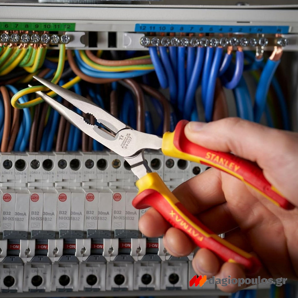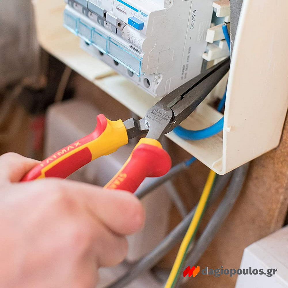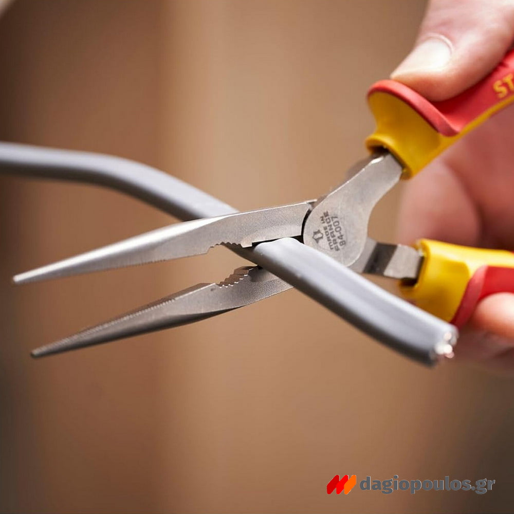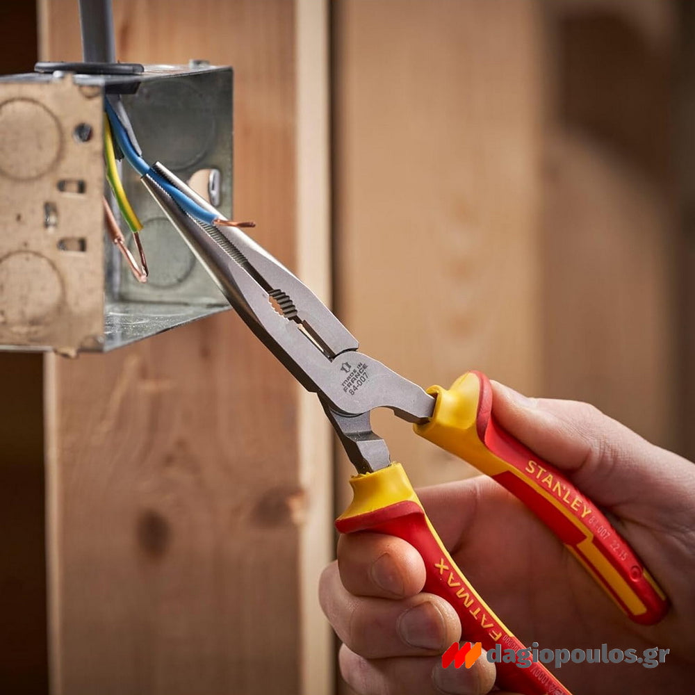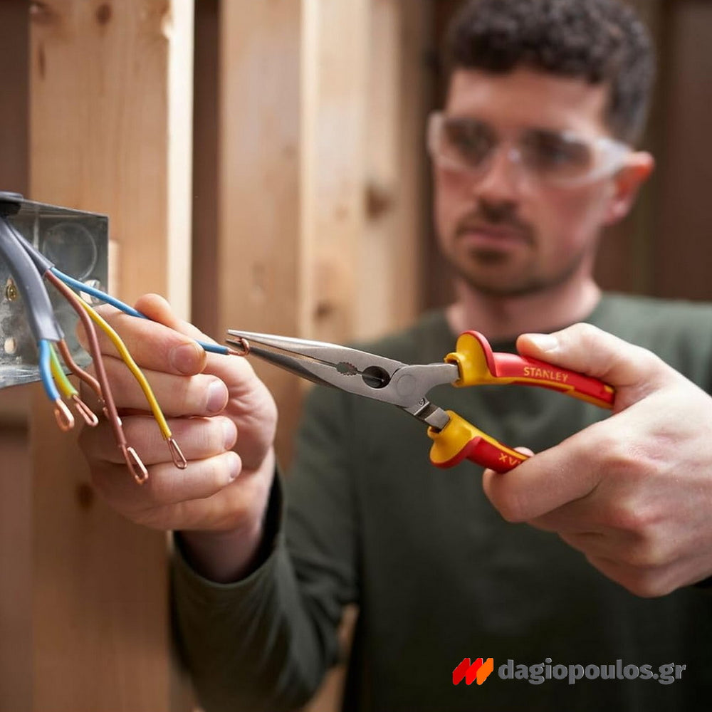 Επαγγελματική μυτοτσίμπιδα ασφαλείας 1000V από τη Stanley, σχεδιασμένη για ηλεκτρικές εργασίες υψηλής ακριβείας υπό απαιτητικές συνθήκες.
