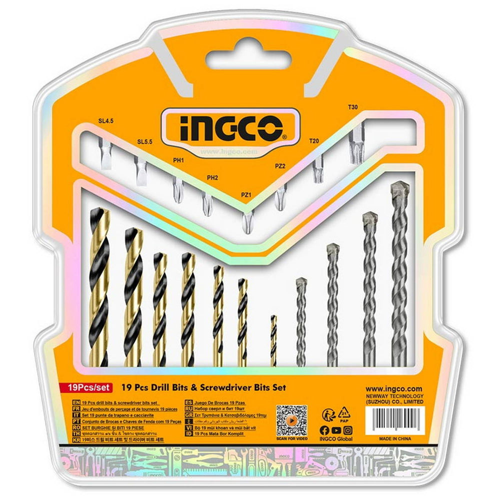 INGCO AKSDB1901 Συλλογή Τρυπάνια και Μύτες Σετ 19 Τεμ