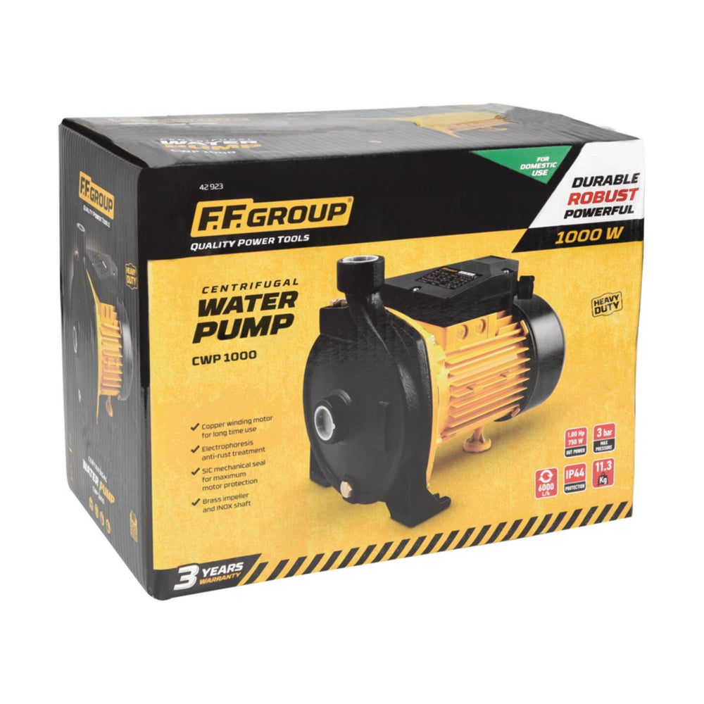 H FF Group 42923 CWP 1000 είναι μία αντλία επιφάνειας φυγοκεντρική με ισχυρό κινητήρα και μεγάλη διάρκεια ζωής, για οικιακή χρήση