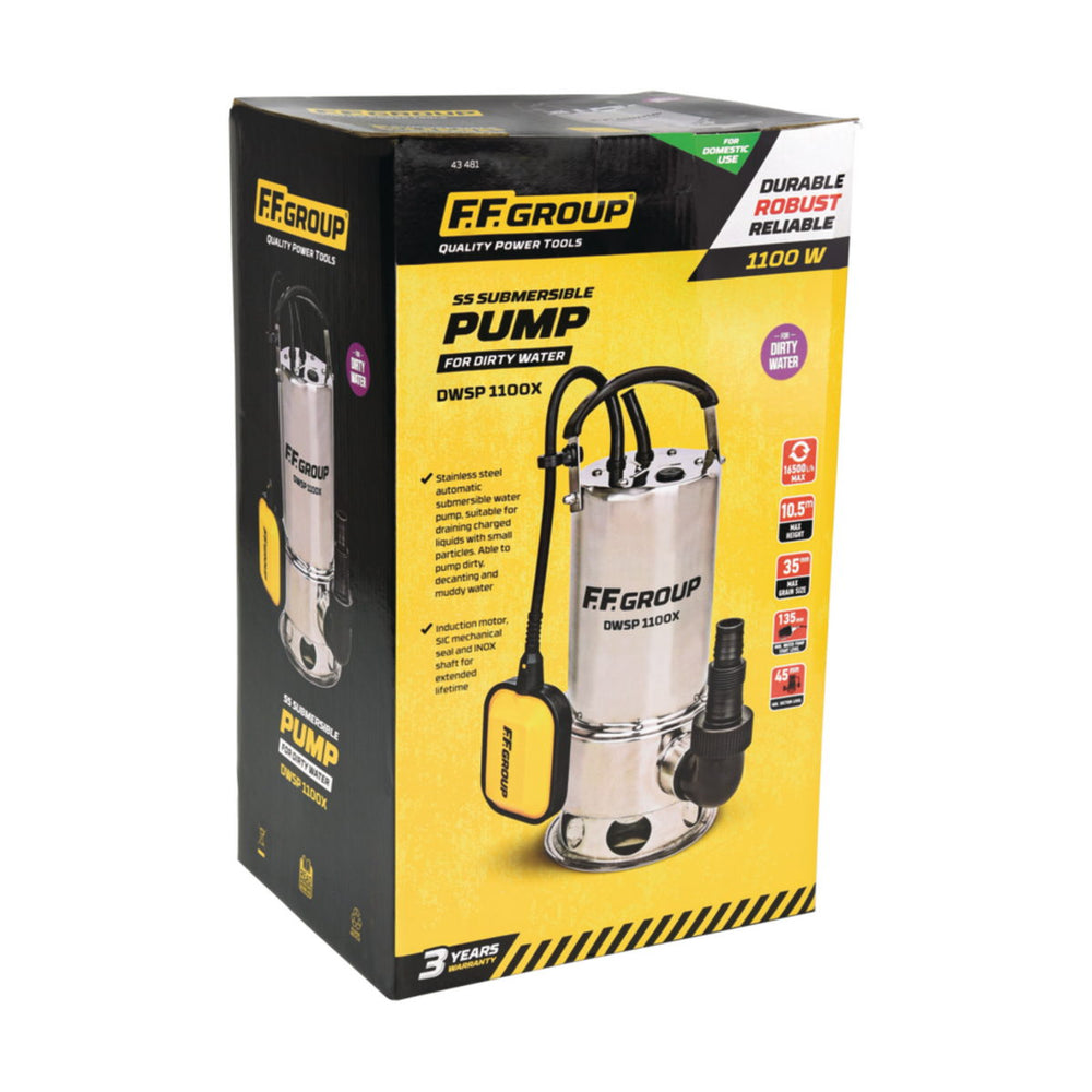 H FF Group 43481 DWSP 110X είναι υποβρύχια αντλία ακάθαρτων υδάτων ανοξείδωτη, για οικιακή χρήση