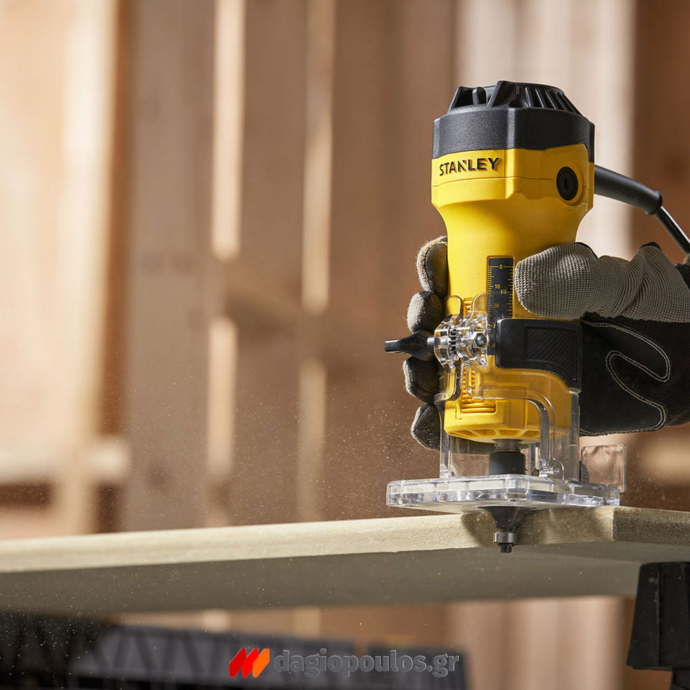 Το Stanley ST55 είναι ένας φρέζας χειρός (trimmer) με ισχύ 550W, σχεδιασμένος για ακριβείς κοπές και φινιρίσματα σε ξύλο και άλλα υλικά.