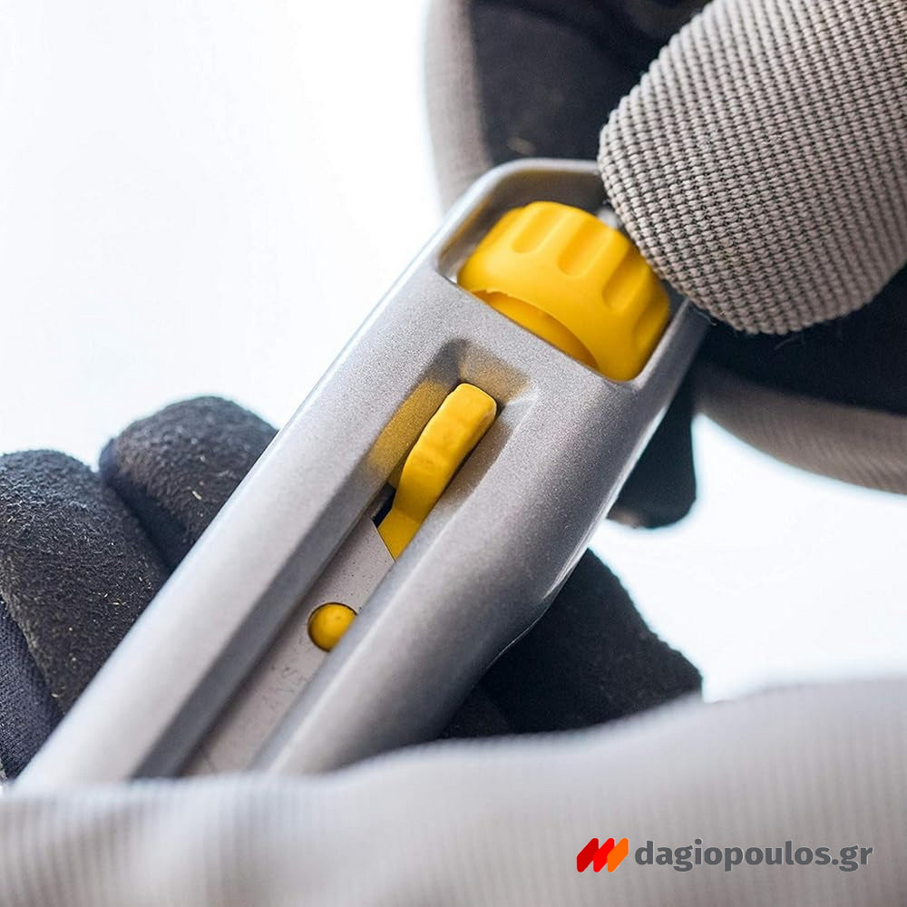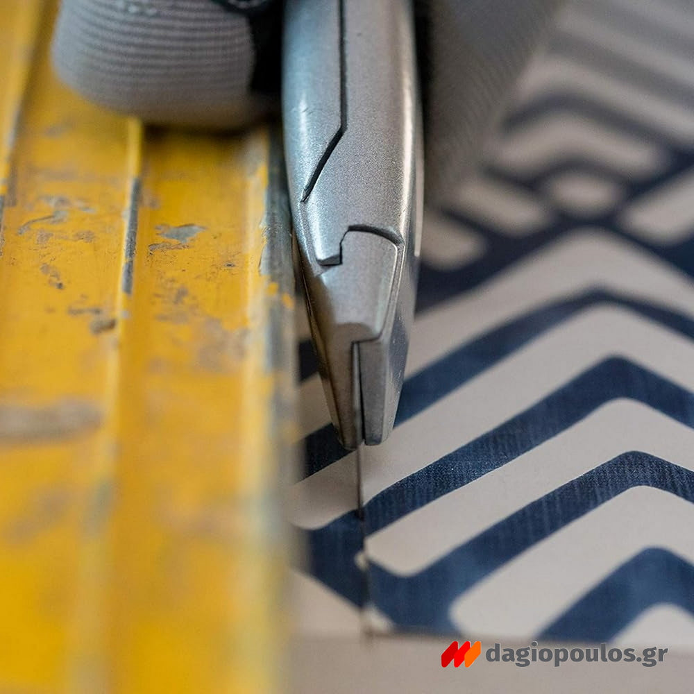 Ο εργονομικός του σχεδιασμός, σε συνδυασμό με τη ροδέλα κλειδώματος, προσφέρει σταθερότητα και ασφάλεια σε κάθε χρήση. Κατάλληλο για κοπή χαρτιού, φιλμ, υφάσματος, μονωτικών και ελαφριών υλικών.