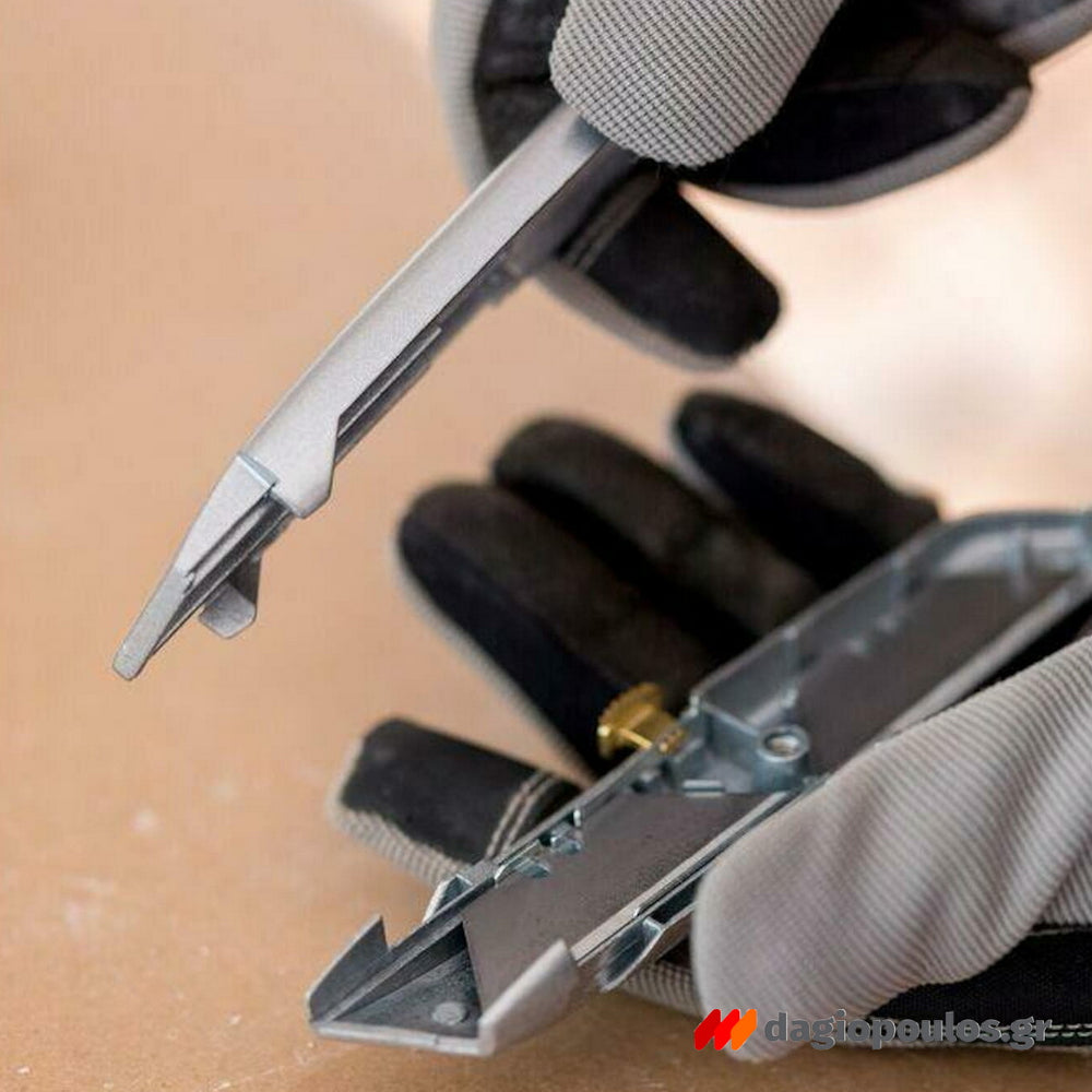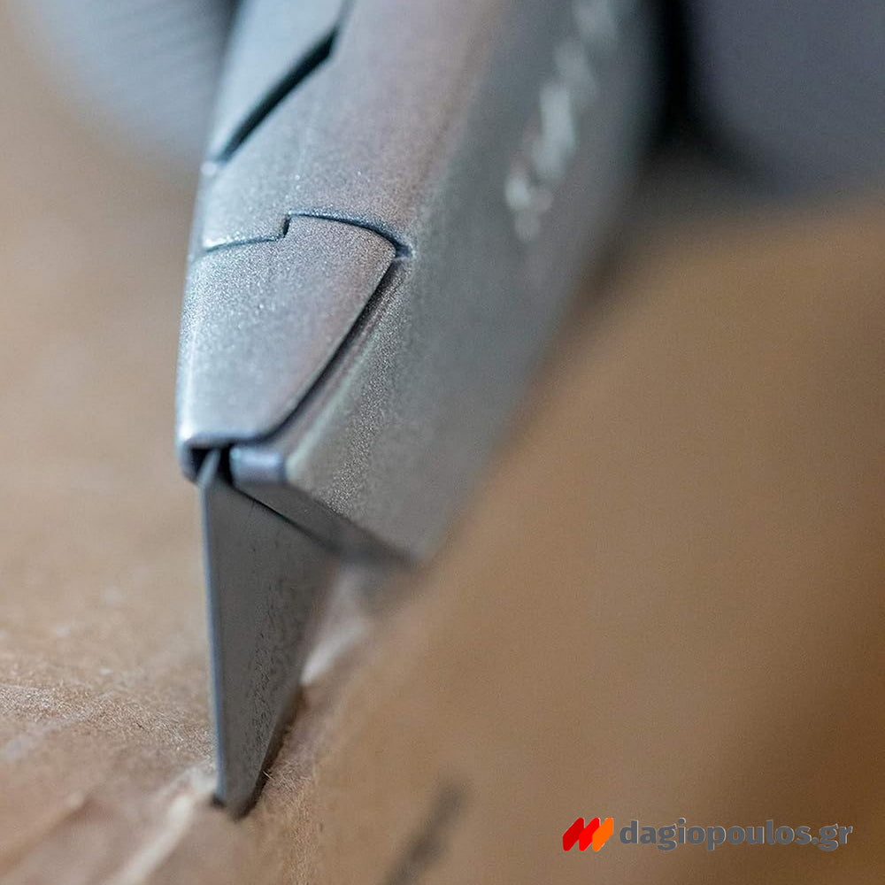 Ο σχεδιασμός του περιλαμβάνει εργονομική λαβή και δυνατότητα αποθήκευσης ανταλλακτικών λεπίδων εντός της λαβής. Προσφέρει σταθερότητα, ασφάλεια και αποτελεσματικότητα στην κοπή υλικών όπως PVC, χαρτόνι και μουσαμάς.