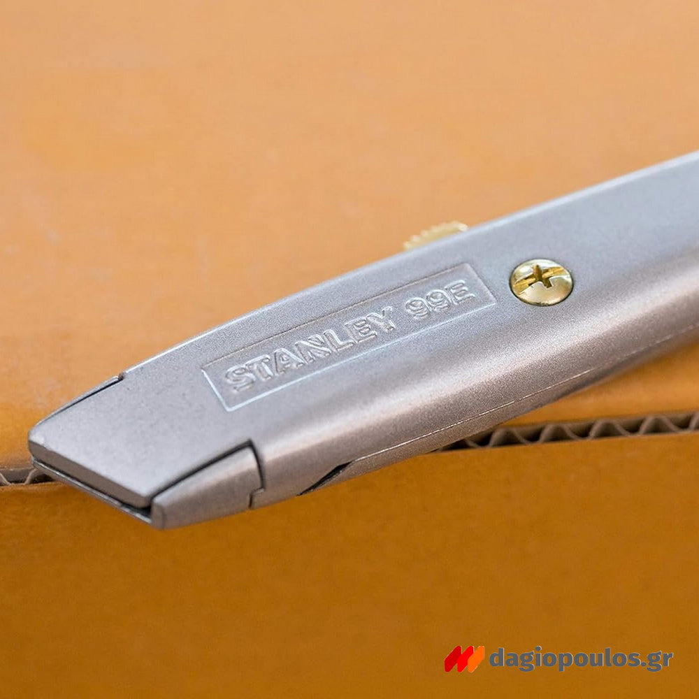 Stanley 1-10-099 μαχαίρι μουσαμάδων με τραπεζοειδή λεπίδα, διακόπτη ασφαλείας και μεταλλική κατασκευή. Ιδανικό για κοπή PVC, δέρματος και μονωτικών υλικών.