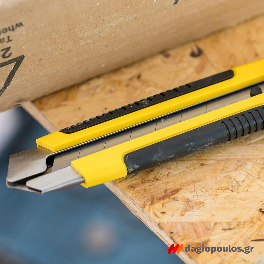 Με μεταλλικό σώμα υψηλής αντοχής και εργονομική λαβή, προσφέρει ασφαλές κράτημα και μέγιστο έλεγχο. Η λεπίδα είναι σταθερή και εξαιρετικά κοφτερή, κατάλληλη για κοπή μοκέτας, PVC, χαρτονιών και πολλών άλλων υλικών.