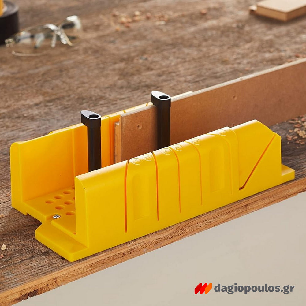 Η Stanley 1‑20‑112 είναι ένα επαγγελματικό πλαστικό φαλτσοκούτι με στερέωση μέσω cam-lock, σχεδιασμένο για κοπές ξύλου με ακρίβεια και ασφάλεια χωρίς να απαιτείται μεταλλικό πλαίσιο.