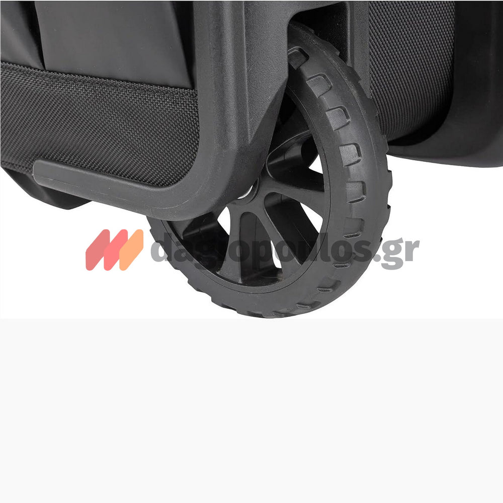 - Ενσωματωμένοι τροχοί βαρέως τύπου + τηλεσκοπική λαβή αλουμινίου