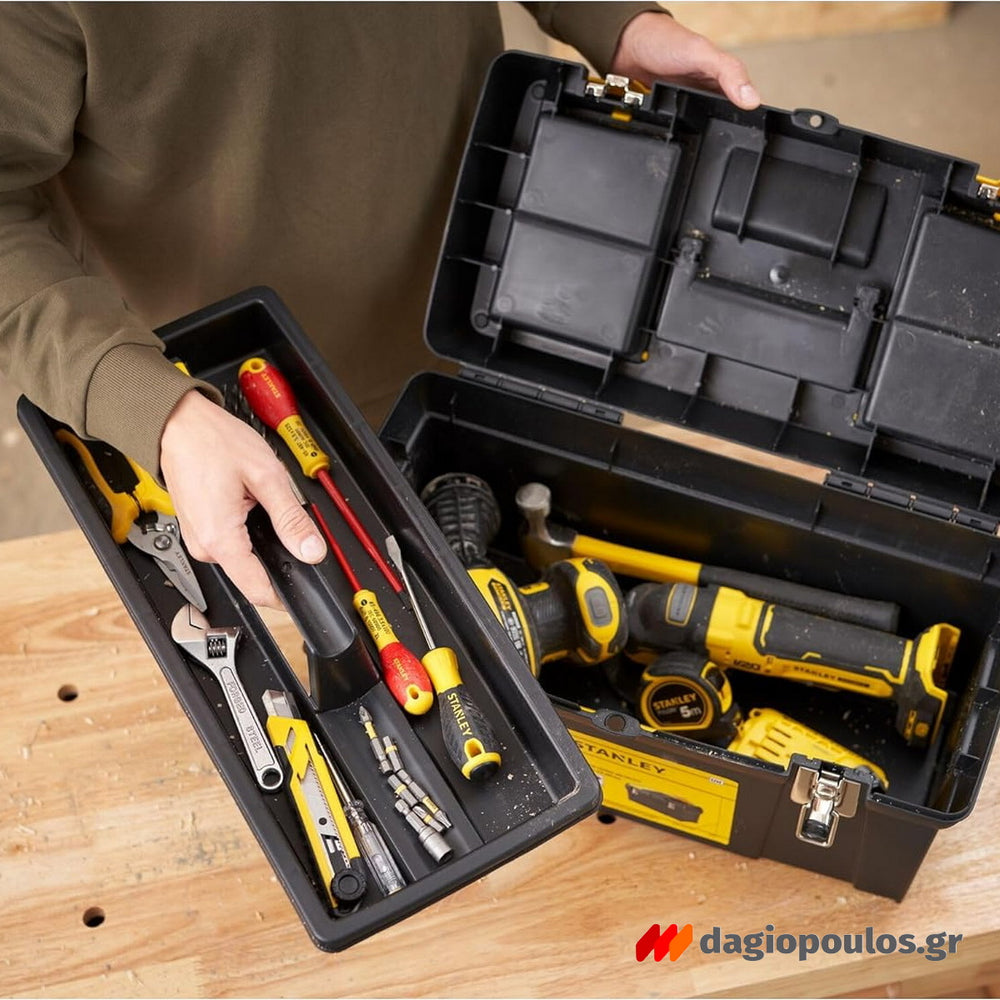 Η Stanley 1-92-066 είναι μια ανθεκτική και ελαφριά πλαστική εργαλειοθήκη, ιδανική για την ασφαλή αποθήκευση και μεταφορά εργαλείων χειρός και εξαρτημάτων.