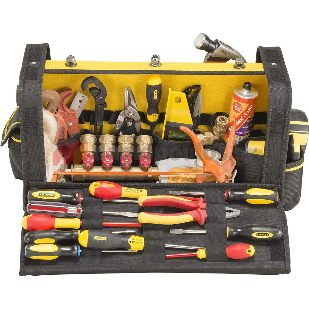 Η STANLEY FMST1-70719 είναι μια υφασμάτινη εργαλειοθήκη 20 ιντσών της σειράς FATMAX, σχεδιασμένη για επαγγελματίες υδραυλικούς και τεχνίτες που απαιτούν ευκολία στη μεταφορά και άμεση πρόσβαση στα εργαλεία τους.