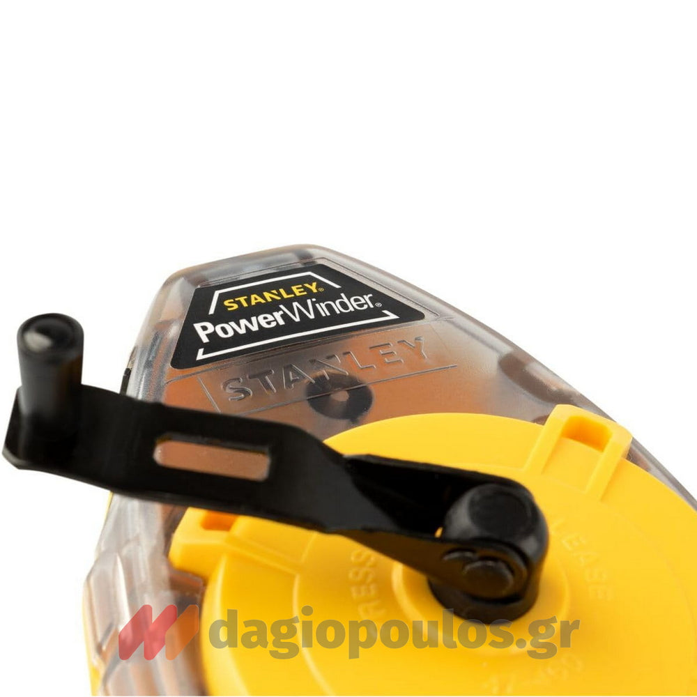 Η Stanley 0‑47‑460 PowerWinder είναι επαγγελματικό ράμα – χαράκτης με κιμωλία (chalk line) μήκους 30 m, σχεδιασμένο για εργοταξιακή χρήση, με ανθεκτικό σώμα και λειτουργία ταχείας δρομολόγησης.
