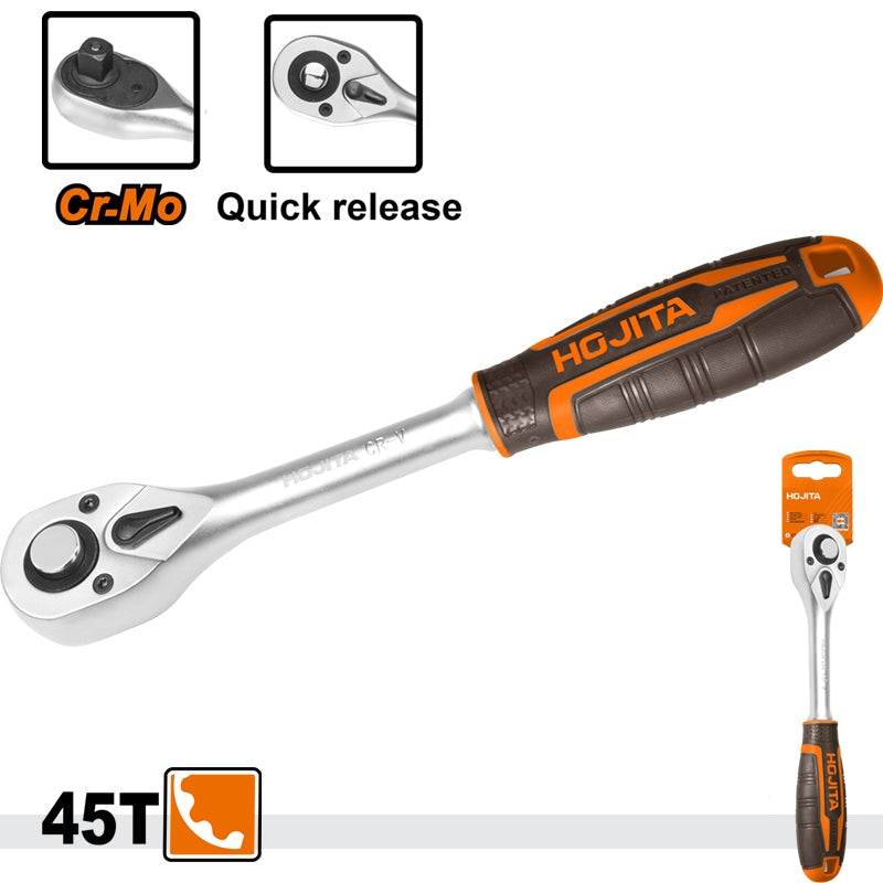Hojita HJRW1212 Επαγγελματική Μανέλα Με Καστάνια CrV 45 Δοντιών Βαρέως Τύπου 1/2" Με Επεκτεινόμενη Κεφαλή