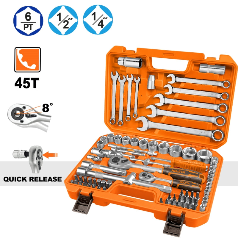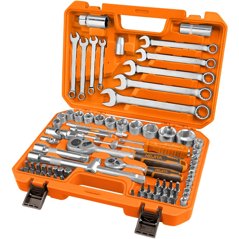 Το Hojita HJST5D480 είναι ένα υπερπλήρες σετ εργαλείων 82 τεμαχίων που περιλαμβάνει καστάνιες 1/2’’ και 1/4’’, μαζί με μια ευρεία ποικιλία από καρυδάκια, εξαρτήματα και μύτες.