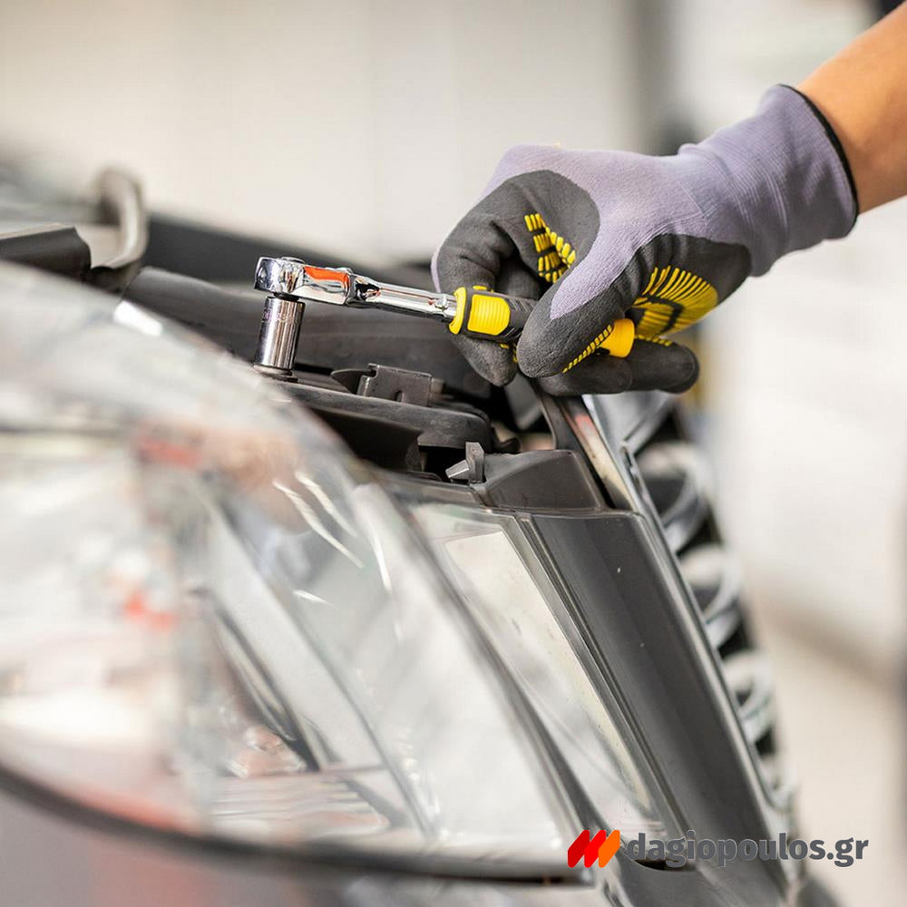 Περιλαμβάνει καστάνια 1/4” με 72 δόντια και βήμα ανά 5 μοίρες, για μεγαλύτερη ακρίβεια και ευκολία σε στενούς χώρους, καθώς και λαβή δύο υλικών για άνεση στη χρήση.