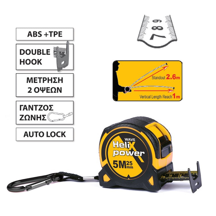 Helix Wave Επαγγελματική Μετροταινία Ρολό 25mm x 5mtr