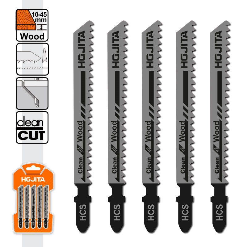 Το σετ Hojita HJJB101B περιλαμβάνει 5 λάμες σέγας ξύλου με 10 δόντια ανά ίντσα (10ΤΡΙ), σχεδιασμένες για γρήγορες και ακριβείς κοπές σε ξύλο.