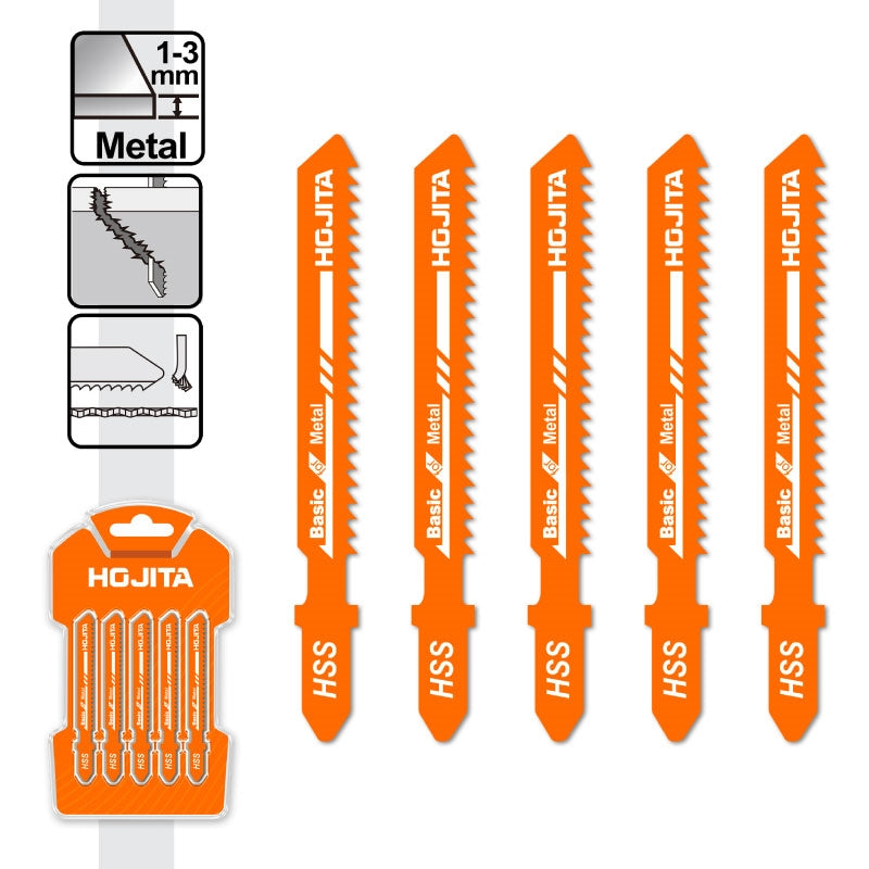 Το σετ Hojita HJJB118A περιλαμβάνει 5 λάμες σέγας σχεδιασμένες ειδικά για κοπή μετάλλου. Οι λάμες είναι κατασκευασμένες από υψηλής ποιότητας HSS (High-Speed Steel) υλικό, το οποίο προσφέρει μεγάλη διάρκεια ζωής και αντοχή σε θερμοκρασίες που αναπτύσσονται κατά την κοπή μετάλλων.