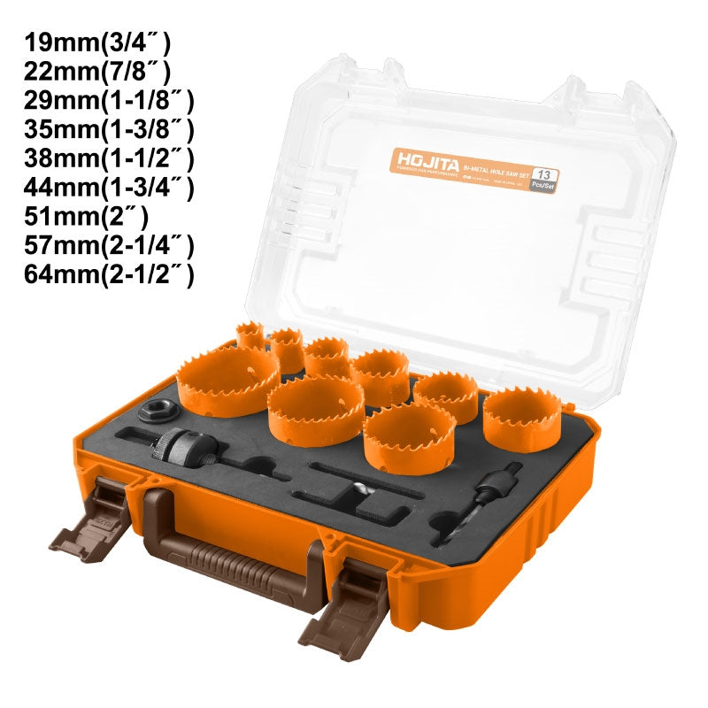 Το σετ Hojita HJKJ3413 περιλαμβάνει 13 ποτηροτρύπανα σχεδιασμένα ειδικά για διάτρηση μετάλλου.