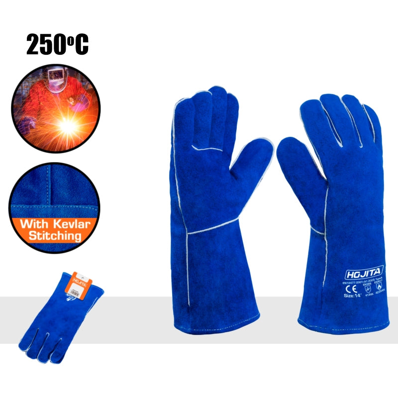 Τα Hojita HJLG2014 είναι δερμάτινα γάντια ηλεκτροσυγκόλλησης που προσφέρουν αξιόπιστη προστασία από θερμότητα έως 250°C, σπινθήρες και φλόγες.