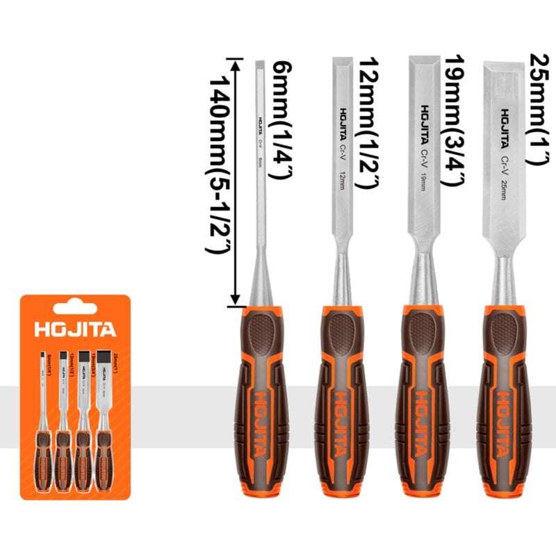 Το Hojita HJWC2204 είναι ένα σετ τεσσάρων σκαρπέλων 140mm κατασκευασμένων από υψηλής ποιότητας ατσάλι Cr-V (χρώμιο-βαναδίου), σχεδιασμένα για ακρίβεια, αντοχή και άνεση στη χρήση.