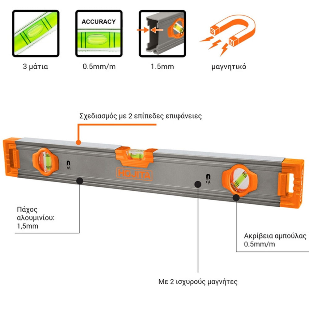 Το Hojita Αλφάδι Αλουμινίου Μαγνητικό είναι το ιδανικό εργαλείο για απόλυτα ευθυγραμμισμένες κατασκευές.