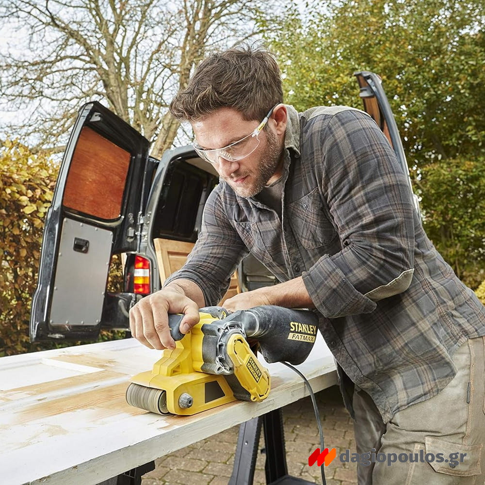 Το τριβείο ιμάντα Stanley FATMAX FMEW204K είναι ένας εξοπλισμός υψηλής ισχύος που σας επιτρέπει να αφαιρείτε το υλικό γρήγορα και με ακρίβεια ανάλογα με την επιλογή του σωστού ιμάντα.