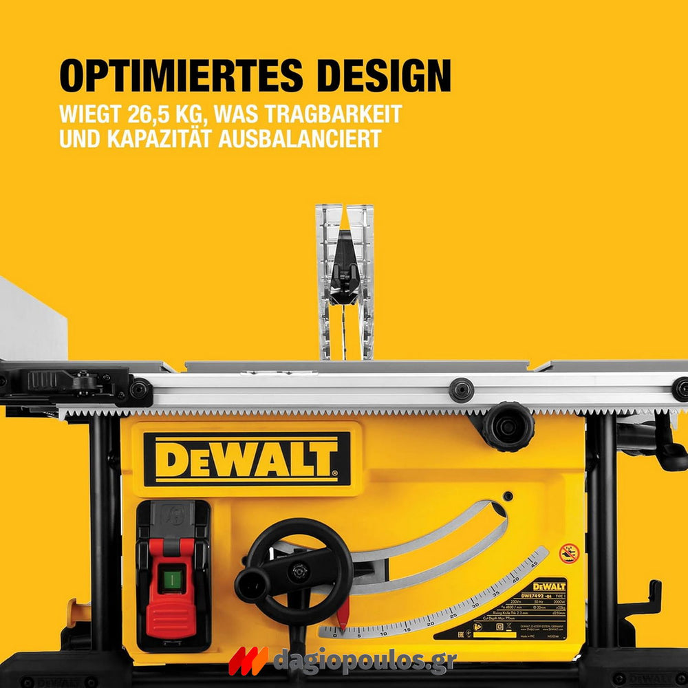 Το DeWalt DWE7492 είναι ένα ισχυρό, ενσύρματο δισκοπρίονο πάγκου 250 mm (10″) με κινητήρα 1800 W, σχεδιασμένο για επαγγελματική χρήση σε ξύλο, MDF και πλαστικά.
