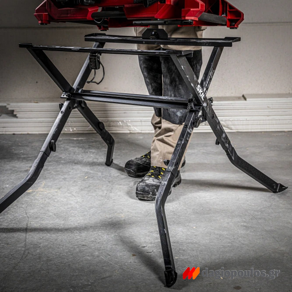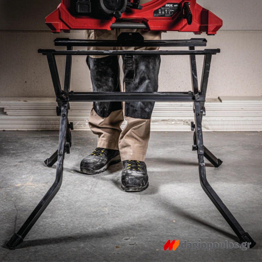 Στήσιμο χωρίς εργαλείο : Μπορείτε εύκολα να στηρίξετε σταθερό δισκοπρίονο SKIL στη βάση και να το ρυθμίσετε στο ιδανικό ύψος σας χωρίς τη χρήση εργαλείων. Και μετά την ολοκλήρωση της εργασίας, απλά αποσυνδέστε το σταθερό δισκοπρίονο και διπλώστε τη βάση σε πιο συμπαγές μέγεθος για εύκολη μεταφορά και αποθήκευση.