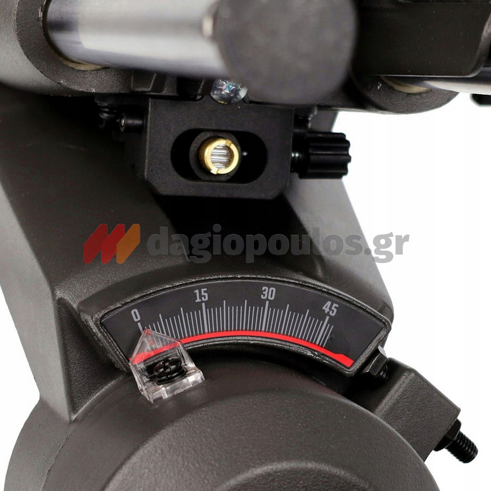 - • Ρύθμιση κλίσης 0°–45° (αριστερά) για bevel και σύνθετες κοπές