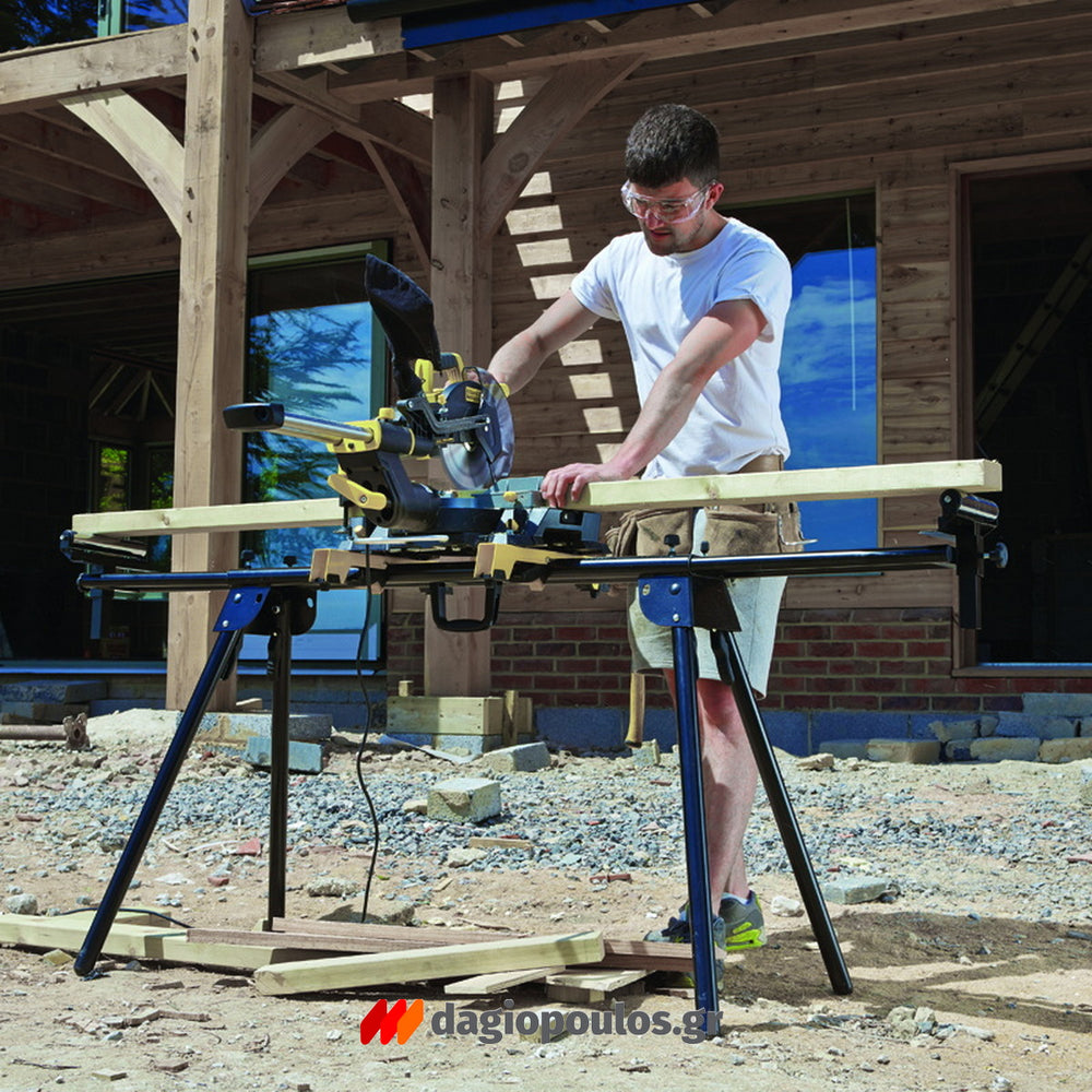Περιλαμβάνει δίσκο 216×30mm 40T, σάκο σκόνης, σφιγκτήρα και επεκτάσεις πάγκου για άμεση χρήση σε εργαστήριο και εργοτάξιο.