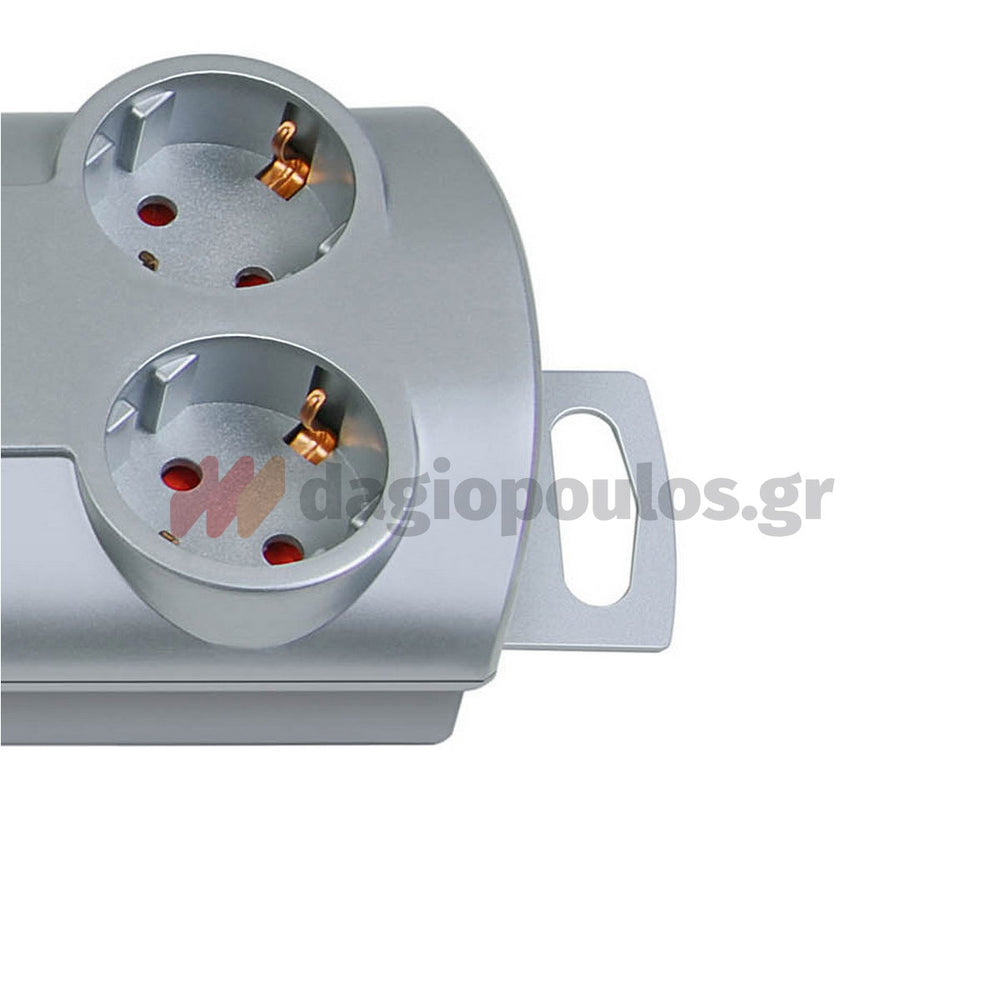 Ο λεπτός ασημί σχεδιασμός με πρίζες σε διάταξη 90° και αυξημένη προστασία επαφής προσφέρει οργανωμένη και ασφαλή τροφοδοσία πολλών συσκευών από μία μόνο πρίζα.