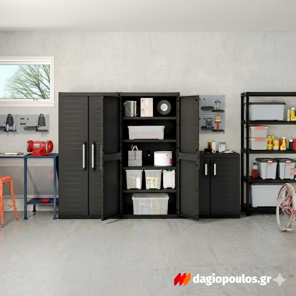 Η δίφυλλη ψηλή ντουλάπα αποθήκευσης Keter Detroit Tall XL είναι μια στιβαρή λύση οργάνωσης για χώρους που θέλουν τάξη χωρίς “φασαρία”.