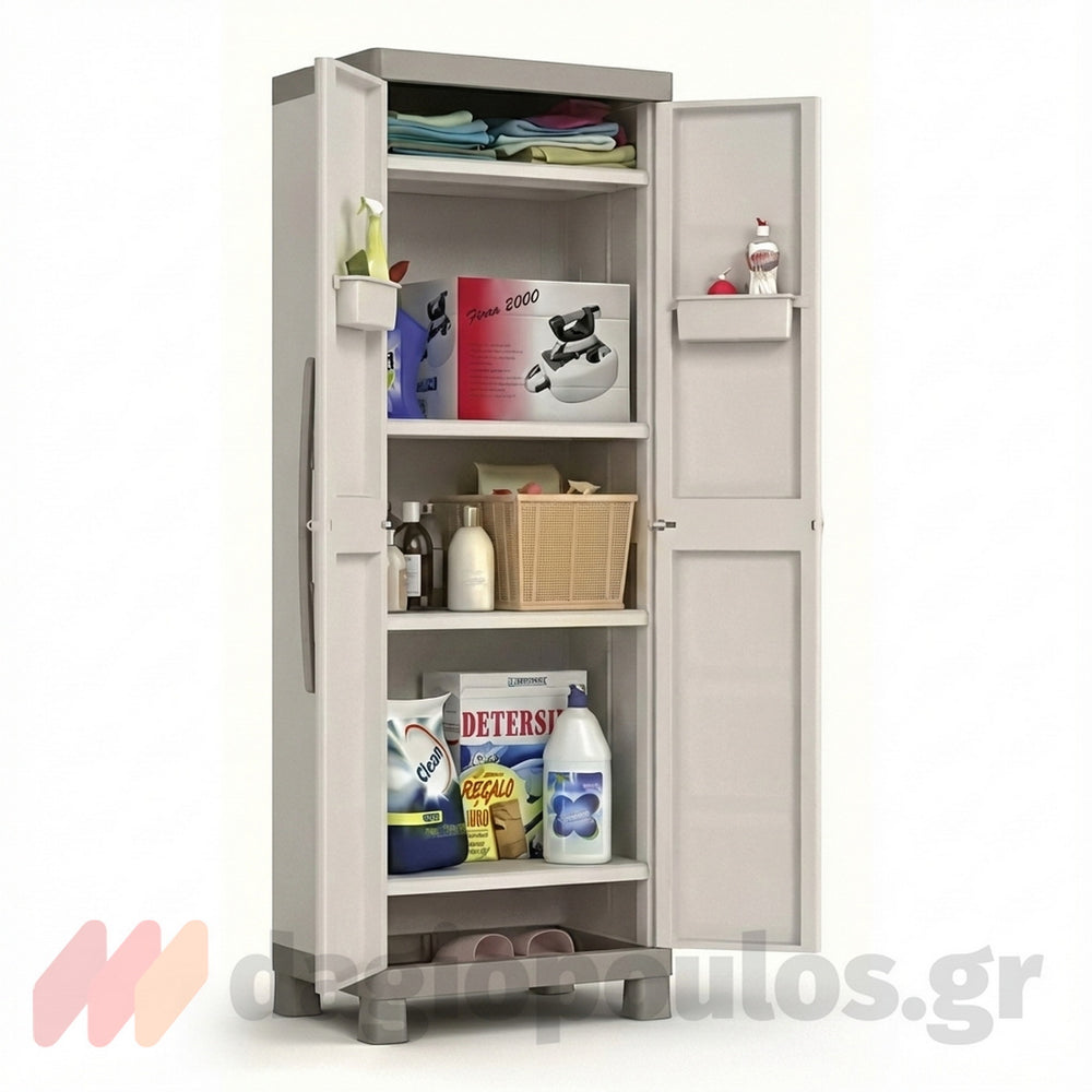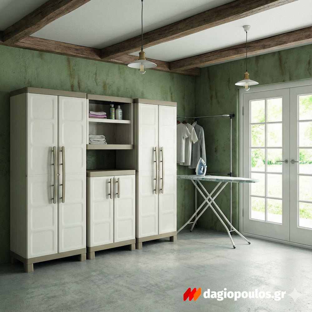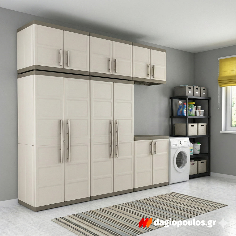 Η κατασκευή από πολυπροπυλένιο εξασφαλίζει αντοχή σε υγρασία, ήλιο και χτυπήματα, διατηρώντας σταθερή την εμφάνιση της ντουλάπας.