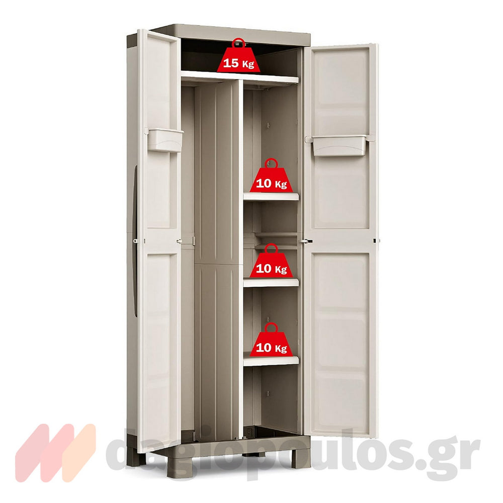 Keter Excellence High Multipurpose Ντουλάπα Δίφυλλη Ψηλή Με 4 Ράφια & Χώρισμα Μπεζ