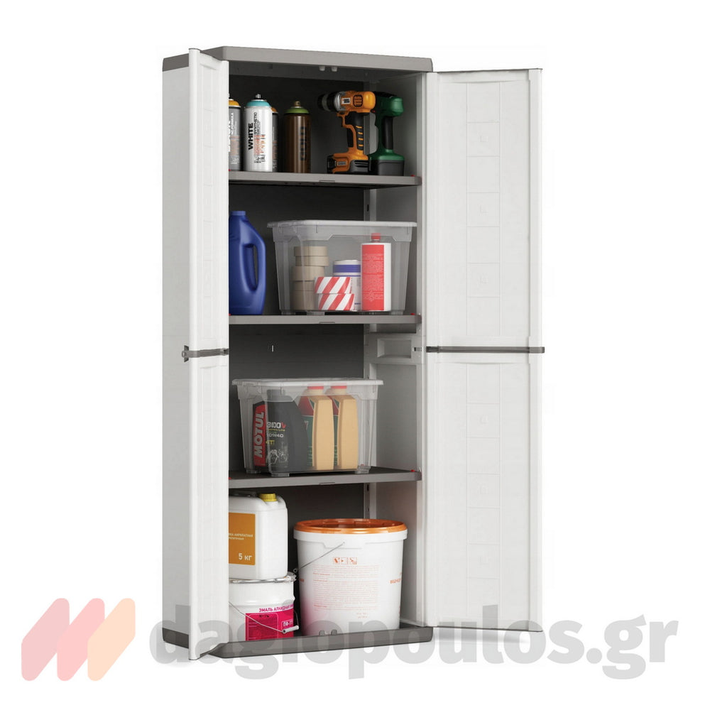 Τα τρία ρυθμιζόμενα ράφια επιτρέπουν ευέλικτη τακτοποίηση για εργαλεία, καθαριστικά, παιχνίδια ή καθημερινά αντικείμενα.