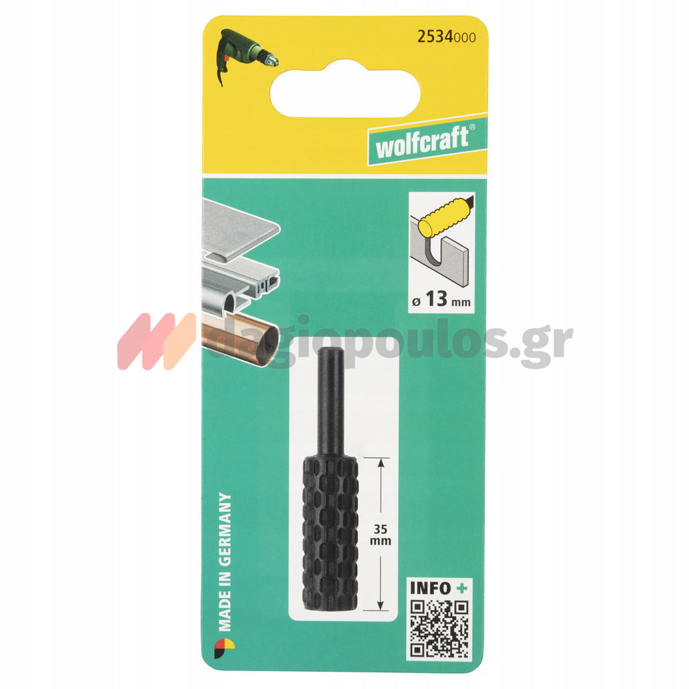 Wolfcraft 2527000 Ράσπα Δραπάνου Κυλινδρική Για Ξύλο Με Άξονα HEX 1/4"
