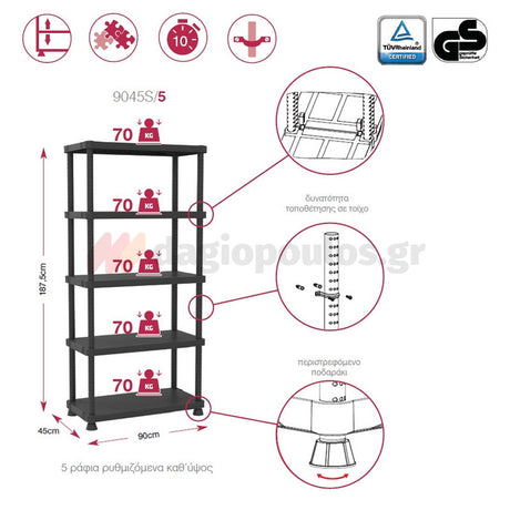 Terry 9045S/5 Ραφιέρα Πλαστική Πολυμορφική 5 Ραφιών Ιταλίας