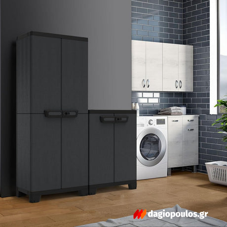 Keter Detroit High Multipurpose XL Ντουλάπα Δίφυλλη Ψηλή Με 2 Ράφια & Χώρισμα Μαύρη