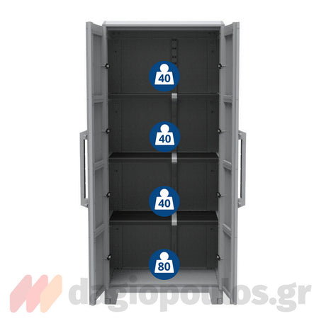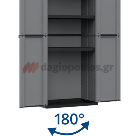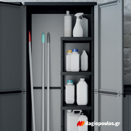 Τιμή169.00€Μη διαθέσιμοΤιμή μονάδας /Μη διαθέσιμοKeter Titan Multispace Ντουλάπα Δίφυλλη Ψηλή Με 4 Ράφια & Χώρισμα Γκρι / Μαύρη