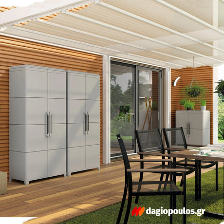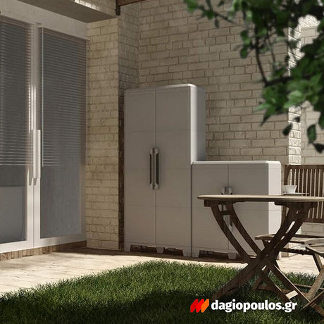 Keter Excellence High Multipurpose XL Ντουλάπα Δίφυλλη Ψηλή Με 4 Ράφια & Χώρισμα Μπεζ 305Lt